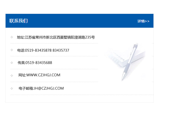 傳真:0519-83435688    郵編:213135    網址:WWW.czjhgj_com.mzqilong.com    電子郵箱:JH@czjhgj_com.mzqilong.com